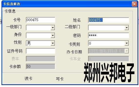 2、先把卡放IC卡读卡器上,读卡,出现卡信息后,直接修改卡信息。(注:卡号是不能修改的。卡号只有在发行的时候来修改,一但发行就不能修改了。)