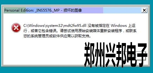 客户使用的我们的局域网一卡通食堂售饭机,需要安装软件,需要安装SQL Server数据库2000,在安装数据库2000时提示错误:C:\Windows\system32\mdt2fw95.dll没有被指定在Windows上运行,或者它包含错误。这是怎么回事呢?