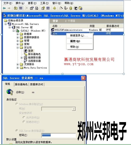 局域网一卡通食堂售饭机需要安装数据库2000,装好数据库时间长了,忘记了sa的登录密码,然后重新恢复备份的时候不知道密码,下面告诉你怎么修改sa帐户的密码: