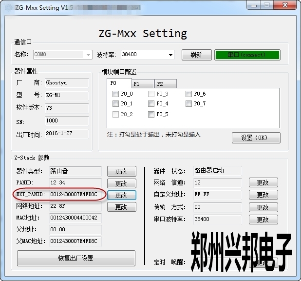 第一步:取之前的网络中的一个路由器设备,使用Setting软件读取其扩展PANID,如下图: