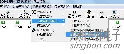 2、设好后要把机器连通。状态检测是绿色的对勾。然后下载一下参数。消费机管理--消费机基本参数。