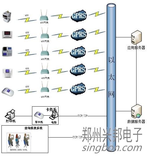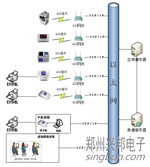 [文章内容简介]:BS平台IC卡中文液晶显示消费机433通讯网络拓扑图。