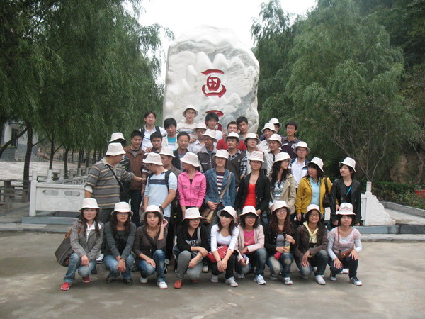 全体人员在画眉谷大门口合影。