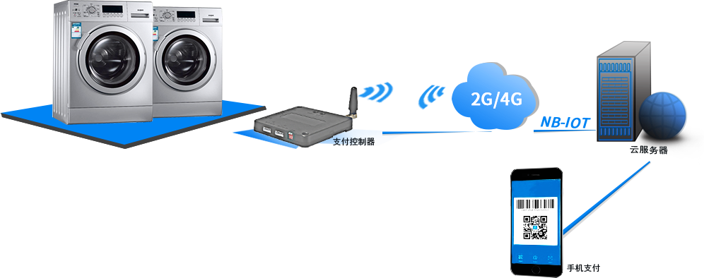 4:在线上服务,通过该平台查看洗衣机的使用状态以及远程启动或预约洗衣服务。线上管理后台远程维护机器,高效便捷的管理。